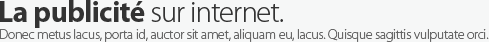 Lorem ipsum dolor sit amet, consectetur adipiscing elit. Sed sed ante et sem pulvinar. Phasellus id nulla ipsum. Vivamus vestibulum metus sit amet tortor ullamcorper ut commodo libero fringilla. Phasellus id nulla ipsum. Vivamus vestibulum metus sit amet tortor ullamcorper ut commodo libero fringilla. Évolution de la publicité Consectetur adipiscing elit. Sed sed ante et sem pulvinar ultricies.Aliquam tempus tristique ipsum eget. En savoir plus |